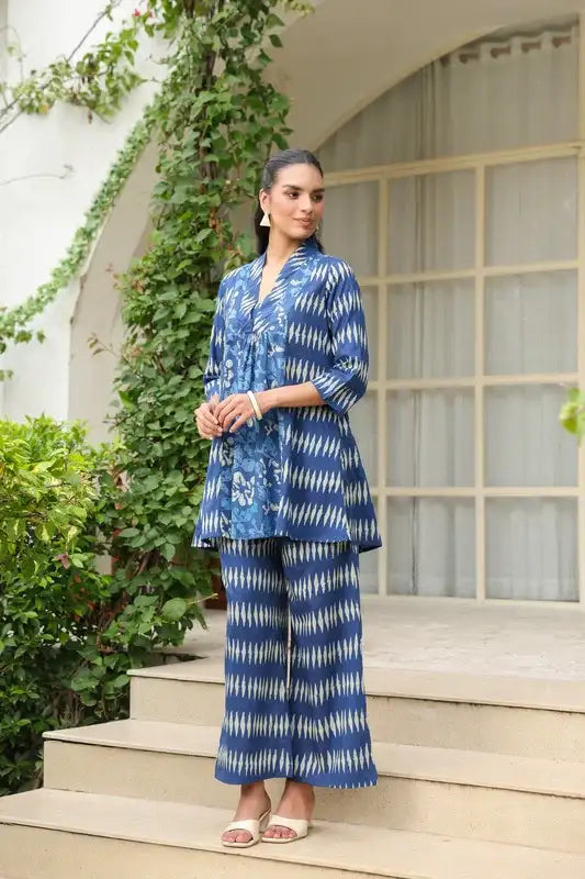 Dive into fun with the Blue Essence Ikat Fusion Co-ord Set, where bold ikat patterns meet a splash of playful blue vibes. This lively set keeps you comfy and stylish, perfect for turning everyday moments into a vibrant celebration of color and culture. Let your outfit do the talking and spark joy wherever you go!
