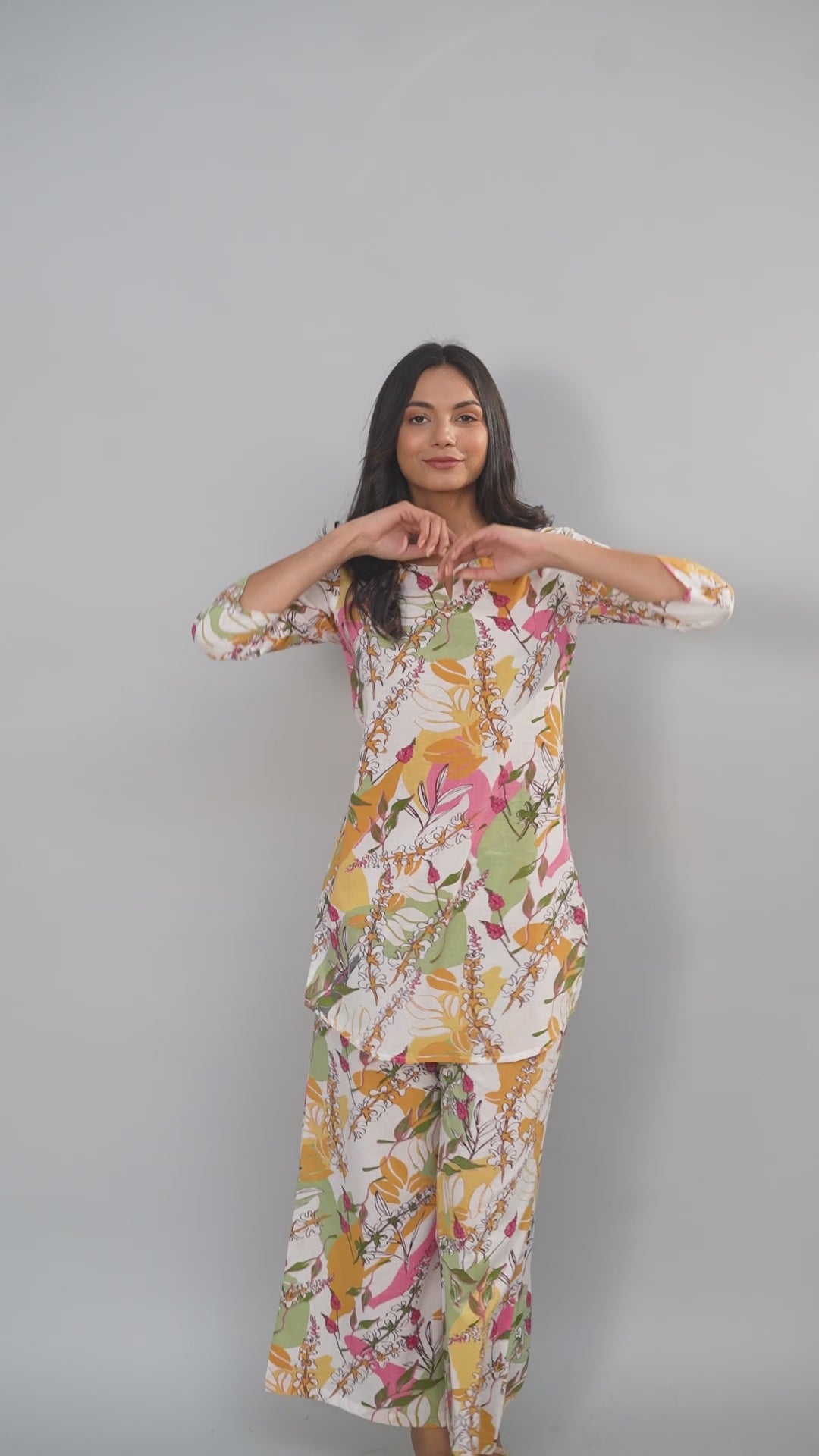 Abstract Leaves on Off-white Cotton Palazzo Loungewear Set