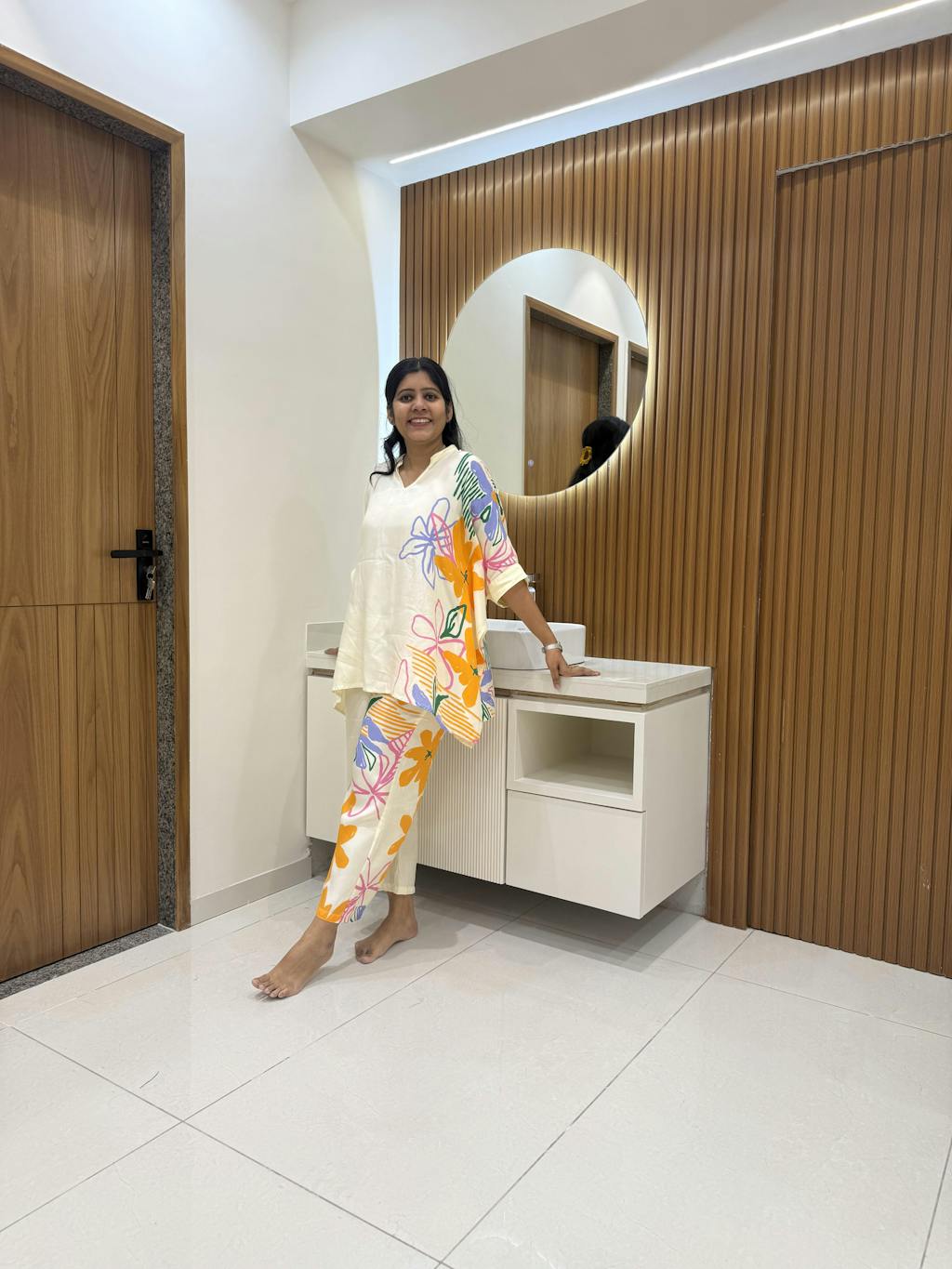 Step into enchantment with this mesmerizing teal printed cotton co-ord set! Adorned with captivating magical-inspired prints, this two-piece wonder transforms your everyday wardrobe into something extraordinary. Crafted from soft, breathable cotton, it's designed for all-day comfort without compromising on style. Wear the set together for a coordinated statement, or separate the pieces to create multiple looks throughout your week. Perfect for those who love to add a touch of whimsy to their closet, this playful ensemble celebrates individuality and creative self-expression!